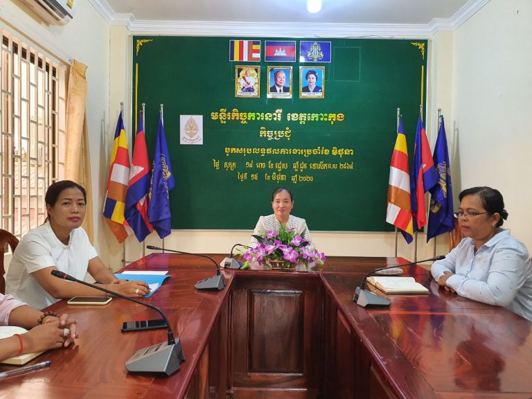 លោកស្រី សុខ សុធាវី ប្រធានមន្ទីរកិច្ចការនារីខេត្តកោះកុង បានអញ្ជើញដឹកនាំកិច្ចប្រជុំប្រចាំខែមិថុនា ដើម្បីពិនិត្យលទ្ធផល នៃការអនុវត្តការងារ ដែលបានអនុវត្តកន្លងមក និងលើបញ្ហាប្រឈម សម្រាប់ដោះស្រាយ ព្រមទាំងលើកផែនការសម្រាប់អនុវត្តបន្ត។