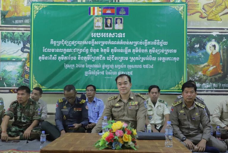 លោក ឈេង សុវណ្ណដា អភិបាលរង នៃគណៈអភិបាលខេត្តកោះកុង តំណាងលោកជំទាវអភិបាលខេត្ត បានអញ្ជើញជាអធិបតី ក្នុងកិច្ចប្រជុំផ្សព្វផ្សាយសេចក្តីសម្រេចកំណត់តំបន់សម្រាប់ធ្វើការវិនិច្ឆ័យ ដែលមានលក្ខណៈជាប្រព័ន្ធចំនួន ៦ភូមិ (ភូមិអន់ឆ្អើត ភូមិខ្សាច់ក្រហម ភូមិនាពិសី ភូមិចំបក់ ភូមិតាបែន និងភូមិព្រែកជីក) ឃុំជីខក្រោម ស្រុកស្រែអំបិល ខេត្តកោះកុង