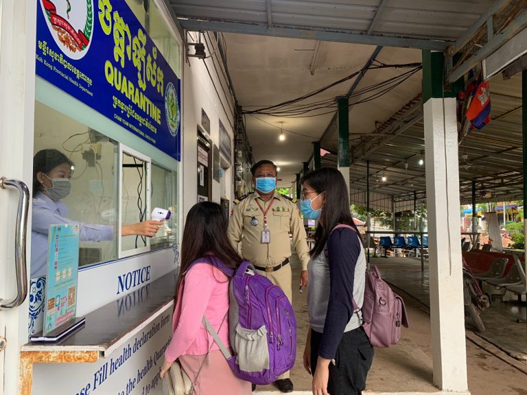 ក្រុមការងារចត្តាឡីស័ក នៃមន្ទីរសុខាភិបាលខេត្តកោះកុង បានធ្វើការត្រួតពិនិត្យកំដៅអ្នកបើកបរដឹកទំនិញចេញ-ចូលតាមច្រកព្រំដែនអន្តរជាតិចាំយាម ព្រមជាមួយនឹងការបាញ់ថ្នាំសំលាប់មេរោគទៅលើរថយន្តដឹកទំនិញផងដែរ។