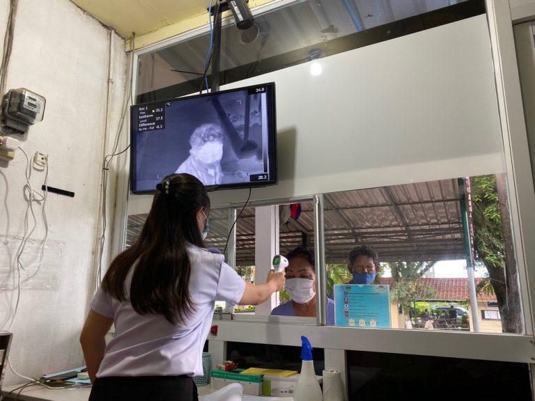ក្រុមការងារចត្តាឡីស័ក នៃមន្ទីរសុខាភិបាលខេត្តកោះកុង បានធ្វើការត្រួតពិនិត្យកំដៅអ្នកបើកបរដឹកទំនិញចេញ-ចូលតាមច្រកព្រំដែនអន្តរជាតិចាំយាម ព្រមជាមួយនឹងការបាញ់ថ្នាំសំលាប់មេរោគទៅលើរថយន្តដឹកទំនិញផងដែរ។