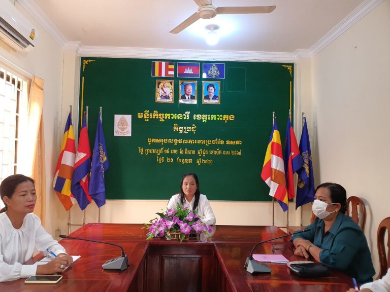 លោកស្រី សុខ សុធាវី ប្រធានមន្ទីរកិច្ចការនារីខេត្តកោះកុង បានអញ្ជើញដឹកនាំកិច្ចប្រជុំប្រចាំខែឧសភា ឆ្នាំ២០២០ និងលើកទិសដៅសម្រាប់អនុវត្តការងារបន្ត