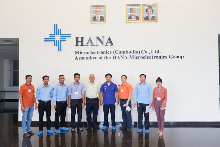 លោក ខ្លឹម គគីរ ប្រធានមន្ទីរឧស្សាហកម្ម វិទ្យាសាស្ត្រ បច្ចេកវិទ្យា និងនវានុវត្តន៍ខេត្តកោះកុង បានអញ្ជើញដឹកនាំមន្ត្រីជំនាញមន្ទីរចុះត្រួតពិនិត្យ និងវាយតម្លៃលើសំណើរសូមបន្តសុពលភាពវិញ្ញាបនបត្រអនុញ្ញាតឲ្យដំណើរការរោងចក្រ Hana Microelectronics (Cambodia) Co., Ltd