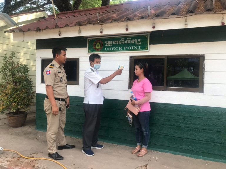 ក្រុមការងារចត្តាឡីស័ក នៃមន្ទីរសុខាភិបាលខេត្តកោះកុង បានធ្វើការត្រួតពិនិត្យកំដៅអ្នកបើកបរដឹកទំនិញចេញ-ចូលតាមច្រកព្រំដែនអន្តរជាតិចាំយាម ព្រមជាមួយនឹងការបាញ់ថ្នាំសំលាប់មេរោគទៅលើរថយន្តដឹកទំនិញផងដែរ