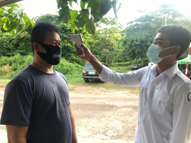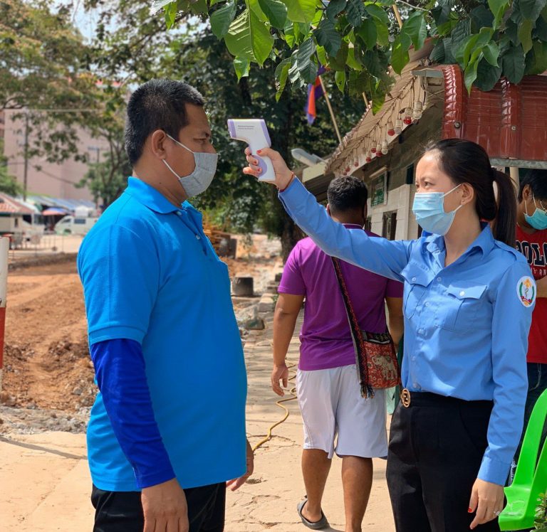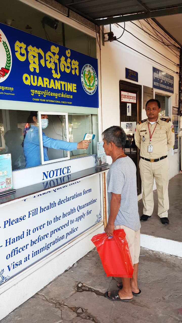 ក្រុមការងារចត្តាឡីស័ក នៃមន្ទីរសុខាភិបាលខេត្តកោះកុង បានធ្វើការត្រួតពិនិត្យកំដៅអ្នកបើកបរដឹកទំនិញចេញ-ចូលតាមច្រកព្រំដែនអន្តរជាតិចាំយាម ព្រមជាមួយនឹងការបាញ់ថ្នាំសំលាប់មេរោគទៅលើរថយន្តដឹកទំនិញផងដែរ