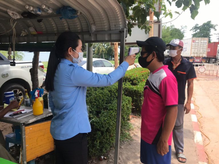 ក្រុមការងារចត្តាឡីស័ក នៃមន្ទីរសុខាភិបាលខេត្តកោះកុង បានធ្វើការត្រួតពិនិត្យកំដៅអ្នកបើកបរដឹកទំនិញចេញ-ចូលតាមច្រកព្រំដែនអន្តរជាតិចាំយាម ព្រមជាមួយនឹងការបាញ់ថ្នាំសំលាប់មេរោគទៅលើរថយន្តដឹកទំនិញផងដែរ