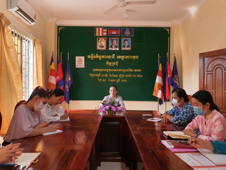 លោកស្រី សុខ សុធាវី ប្រធានមន្ទីរកិច្ចការនារីខេត្តកោះកុង បានអញ្ជើញដឹកនាំកិច្ចប្រជុំបូកសរុបលទ្ធផលការងារប្រចាំខែមេសា ឆ្នាំ២០២០ និងលើកទិសដៅអនុវត្តបន្ត ដោយលើកយកនូវបញ្ហាប្រឈម និងសំណូមពរនានា មកដោះស្រាយ ដើម្បីមានមូលដ្ឋានសម្រាប់ឆ្លើយតបទៅនឹងកង្វះខាតមួយចំនួន ព្រមជាមួយបទពិសោធន៍ថ្មីៗ ក្នុងការអនុវត្តការងារឲ្យកាន់តែមានប្រសិទ្ធភាពខ្ពស់ នឹងទទួលបានលទ្ធផលជាវិជ្ជមាន ឆ្លើយតបរាល់តម្រូវការសំណូមពររបស់ប្រជាពលរដ្ឋ នៅមូលដ្ឋានទាន់ពេលវេលានឹងមានប្រសិទ្ធផល។