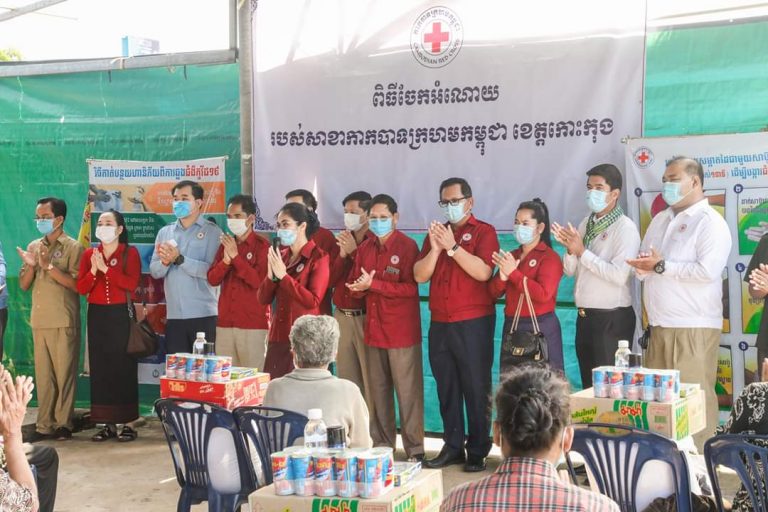 លោកជំទាវ មិថុនា ភូថង ប្រធានគណៈកម្មាធិការសាខា កក្រក ខេត្តកោះកុង សមាជិក សមាជិកាគណៈកម្មាធិការសាខា អនុសាខាកក្រក ក្រុងខេមរភូមិន្ទ សហការជាមួយអាជ្ញាធរភូមិ សង្កាត់ អញ្ជើញជួបសំណេះសំណាល និង ផ្តល់ជូនគ្រឿងឧបភោគ បរិភោគ ដល់ គ្រួសារចាស់ជរា ងាយរងគ្រោះ ចំនួន៣២គ្រួសារ មកពីសង្កាត់ស្ទឹងវែង១២គ្រួសារ សង្កាត់ដងទង់១០គ្រួសារ និសង្កាត់ស្មាច់មានជ័យ១០គ្រួសារ ក្រុងខេមរភូមិន្ទ នៅទីស្នាក់ការសាខា កក្រក ខេត្តកោះកុង