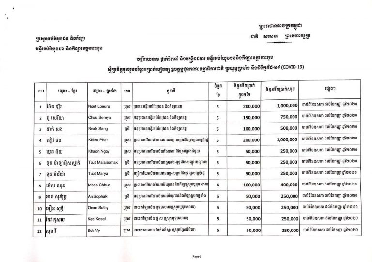 ថ្នាក់ដឹកនាំ និងមន្ត្រីរាជការ នៃមន្ទីរអប់រំ យុវជន និងកីឡាខេត្តកោះកុង សូមចូលរួមបរិច្ចាគដោយស្ម័គ្រចិត្តនូវប្រាក់បៀវត្ស ជូនគណៈកម្មការជាតិប្រយុទ្ធនឹងជំងឺកូវីដ-១៩(Covid-19)