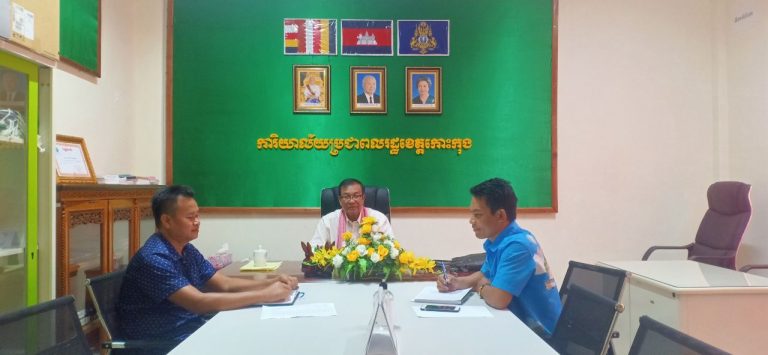 លោក សុខ សុទ្ធី អភិបាលរង នៃគណៈអភិបាលខេត្តកោះកុង បានអញ្ជើញស្វាគមន៍លោក ផន វី និយោជិតការិយាល័យសង្គម បរិស្ថាន និងទំនាក់ទំនងសាធារណៈ ដើម្បីដោះស្រាយផលប៉ះពាល់ដីធ្លី ផ្ទះសម្បែង សំណង់ និងដើមឈើហូបផ្លែ