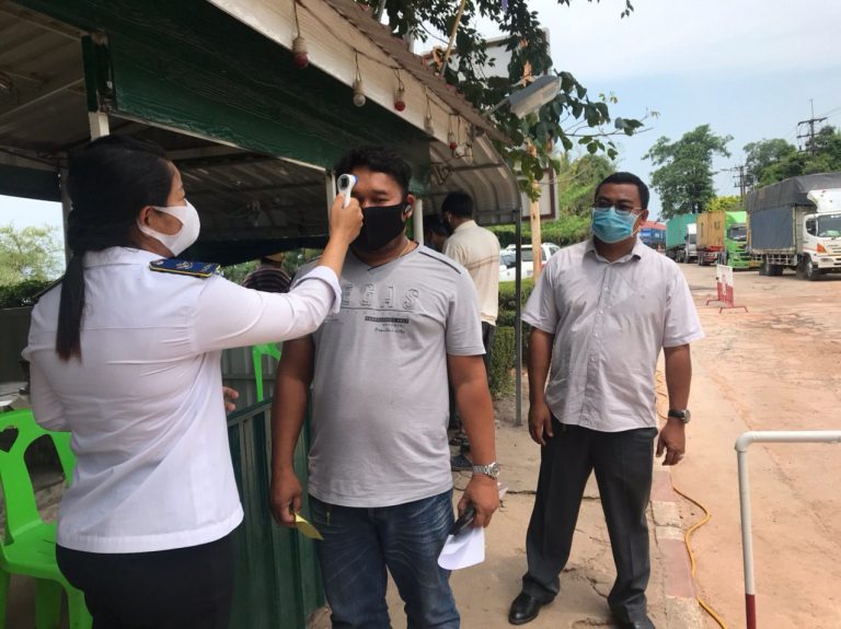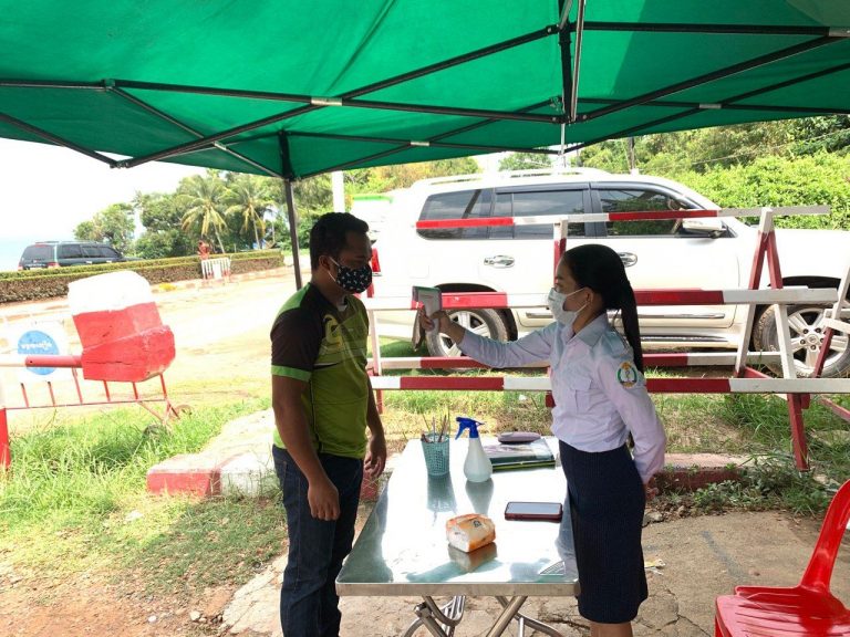 ក្រុមការងារចត្តាឡីស័ក នៃមន្ទីរសុខាភិបាលខេត្តកោះកុង បានធ្វើការត្រួតពិនិត្យកំដៅអ្នកបើកបរដឹកទំនិញចេញ-ចូលតាមច្រកព្រំដែនអន្តរជាតិចាំយាម ព្រមជាមួយនឹងការបាញ់ថ្នាំសំលាប់មេរោគទៅលើរថយន្តដឹកទំនិញផងដែរ