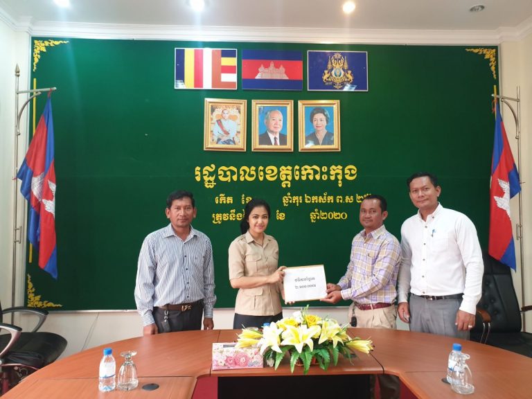 លោកជំទាវ មិថុនា ភូថង អភិបាល នៃគណៈអភិបាលខេត្តកោះកុង បានអញ្ជើញទទួលថវិកា ២,១០០,០០០ រៀល ពីមន្ទីរអភិវឌ្ឍន៍ជនបទខេត្តកោះកុង ដើម្បីចូលរួមប្រយុទ្ធនឹងជំងឺកូវីដ-១៩ ជាមួយរដ្ឋបាលខេត្តកោះកុង