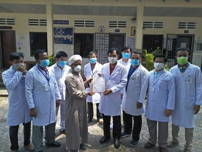 ក្រុមគ្រូពេទ្យខ្សែត្រៀមមុខ នៃមន្ទីរពេទ្យខេត្តកោះកុង បានជូនដំណេីរអ្នកជម្ងឺ COVID ទី២ ដែលបានជាធូសះស្បេីយ បន្ទាប់ពីបានសម្រាកព្យាបាល នៅក្នុងមន្ទីពេទ្យខេត្តកោះកុងអស់រយៈពេល ២១ ថ្ងៃមក