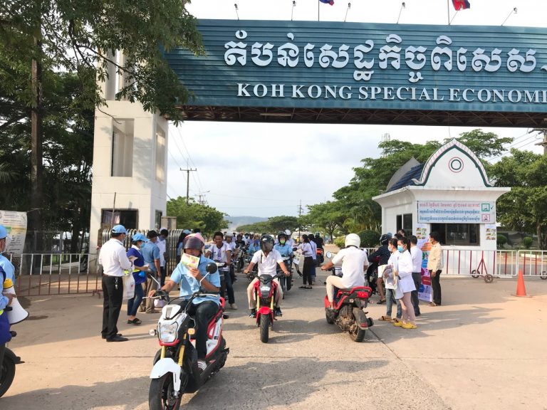 សកម្មភាព ចែកបណ្ណប្រកាស ស្តីពីវិធីសាស្រ្តលាងដៃ និងវិធីសាស្ត្រការពារជម្ងឺកូវីដ-១៩ ដល់កម្មករ តំបន់សេដ្ឋកិច្ចពិសេសកោះកុង