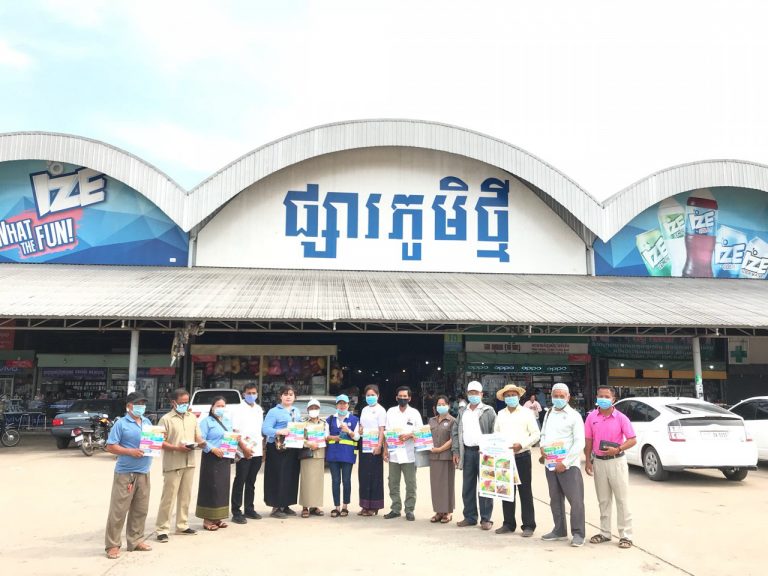 សកម្មភាព ចែកបណ្ណប្រកាស ស្តីពីវិធីសាស្រ្តលាងដៃ និងវិធីសាស្ត្រការពារំងឺកូវីដ-១៩ ដល់អាជីវករ នៅផ្សារភូមិថ្មី ភូមិចាំយាម ឃុំប៉ាក់ខ្លង ស្រុកមណ្ឌលសីមា