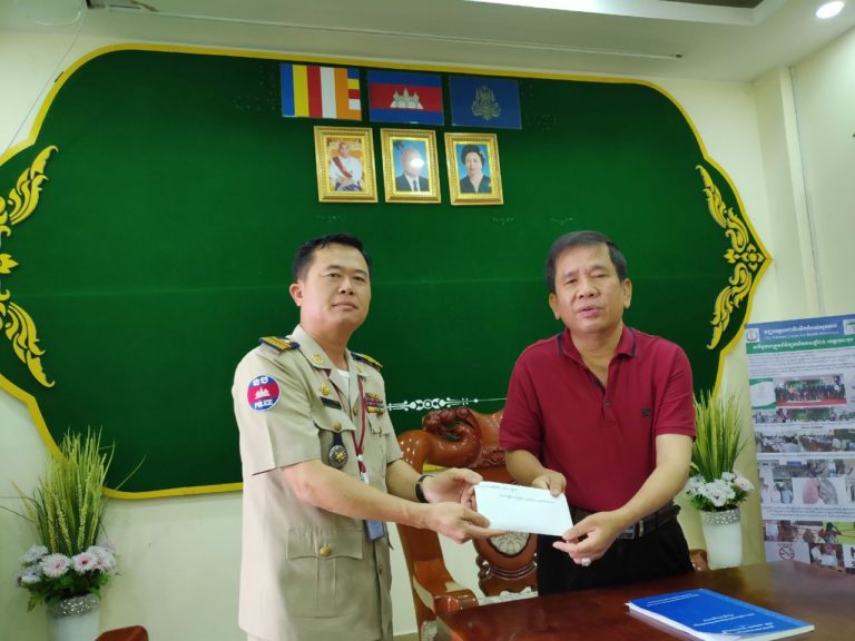 លោកវរសេនីយ៍ឯក ង៉ុយ ជៀង នាយប៉ុស្តិ៍នគរបាលច្រកទ្វារព្រំដែនអន្តរជាតិចាំយាម បានឧបត្ថម្ភថវិកា ចំនួន ៤០០,០០០៛ ដល់មន្ទីរសុខាភិបាលខេត្តកោះកុង ដើម្បីចូលរួមចំណែកគាំទ្រក្នុងសកម្មភាពប្រយុទ្ធប្រឆាំងនឹងជំងឺកូវីដ១៩។