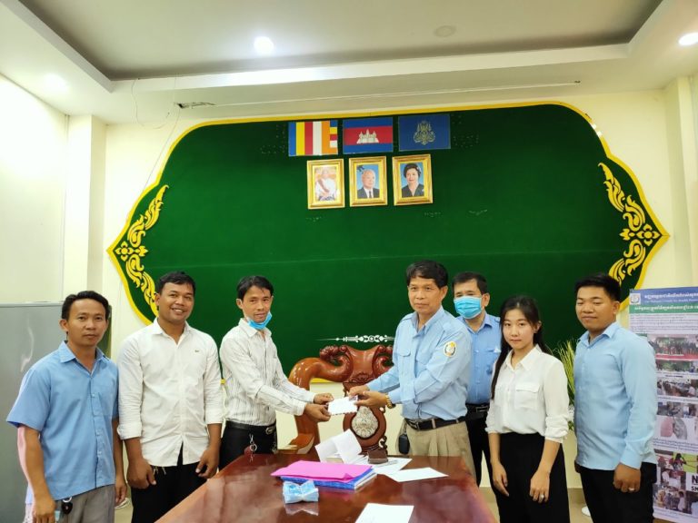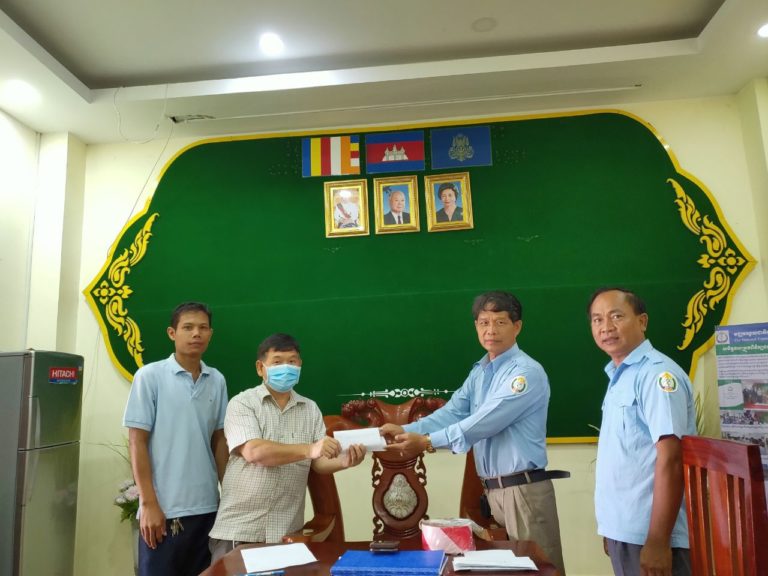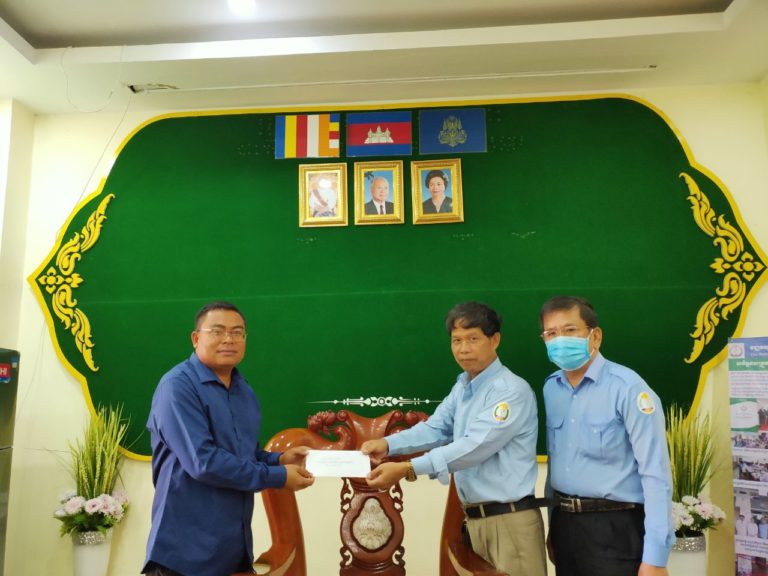 តំណាងមជ្ឈមណ្ឌលបណ្ដុះបណ្ដាលវិជ្ជាជីវៈ ខេត្តកោះកុង លោក អុីវ វុធ្ធីកា និងក្រុមការងារ បានឧបត្ថម្ភថវិកាចំនួន ៩០០,០០០៛ ដើម្បីចូលរួមចំណែកក្នុងសកម្មភាពប្រយុទ្ធប្រឆាំងនឹងជំងឺកូវីដ១៩