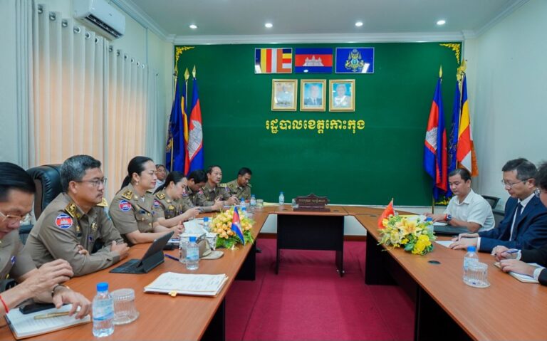 លោកជំទាវ ឈី វ៉ា អភិបាល នៃគណៈអភិបាលខេត្តកោះកុង បានជួបសម្តែងការគួរសម ពិភាក្សាផ្លាស់ប្តូរមតិយោបល់ និងពង្រឹងកិច្ចសហប្រតិបត្តិការក្នុងការប្រយុទ្ធប្រឆាំងបទល្មើសឆបោកតាមប្រព័ន្ធទូរគមនាគមន៍ និងវិស័យផ្សេងៗ ជាមួយក្រុមការងារការិយាល័យកុងស៊ុល នៃស្ថានទូតសាធារណរដ្ឋប្រជាមានិតចិន ប្រចាំនៅខេត្តព្រះសីហនុ