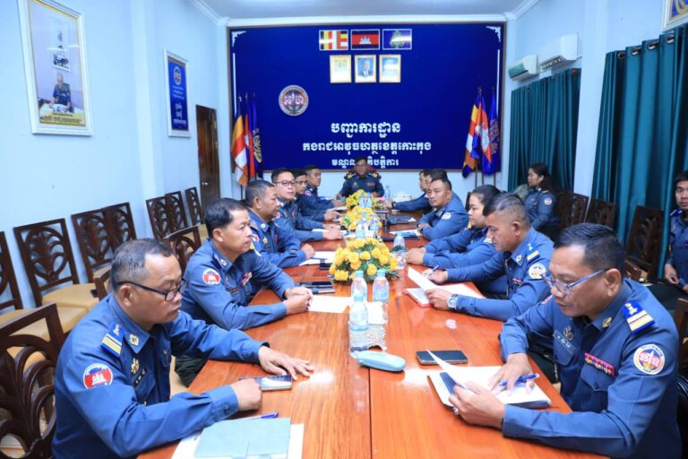 លោកឧត្ដមសេនីយ៍ទោ គង់ មនោ ស្នងការនគរបាលខេត្តកោះកុង បានអញ្ជើញជួបសំណេះសំណាល ជាមួយសិក្ខាកាម ដែលកំពុងសិក្សា ក្នុងវគ្គហ្វឹកហ្វឺនបំប៉នជំនាញអន្តរាគមន៍ពិសេសរយៈពេលខ្លីការប្រើប្រាស់អាវុធវែង-ខ្លី