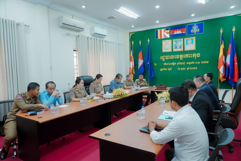 លោកស្រី អ៉ី នារីនេត អភិបាលរង នៃគណៈអភិបាលខេត្តកោះកុង បានអញ្ជើញដឹកនាំ កិច្ចប្រជុំពិភាក្សាលើសំណើរបស់ឈ្មោះ វង្ស គីមហាន និងឈ្មោះ យ៉េ ភូជាង ស្នើសូមចាក់បំពេញខ្សាច់ធម្មជាតិ នៅនាងកុក ឃុំប៉ាក់ខ្លង ស្រុកមណ្ឌលសីមា ខេត្តកោះកុង