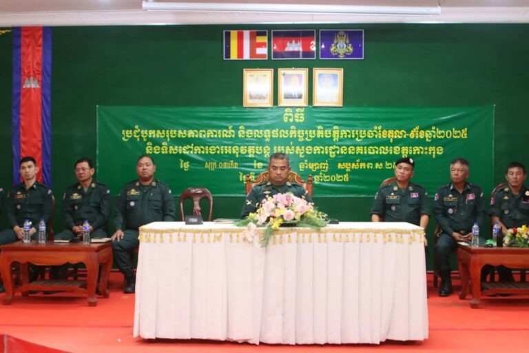 លោកឧត្តមសេនីយ៍ទោ គង់ មនោ ស្នងការនគរបាលខេត្តកោះកុង ដឹកនាំកិច្ចប្រជុំបូកសរុបសភាពការណ៍ និងលទ្ធផលកិច្ចប្រតិបត្តការប្រចាំខែតុលា និងរបាយការណ៍នព្វមាស (រយៈពេល ៩ខែ) ឆ្នាំ២០២៥ និងផ្សព្វផ្សាយទិសដៅការងារអនុវត្តបន្ត របស់ស្នងការដ្ឋាននគរបាលខេត្តកោះកុង