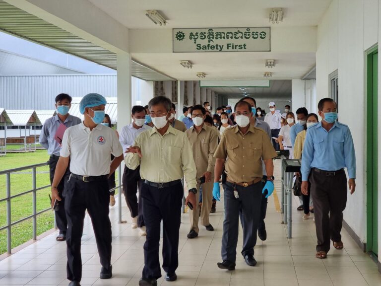 លោក ប្រាក់ វិចិត្រ អភិបាលស្រុក បានអមដំណើរ ឯកឧត្តម នាយឧត្តមសេនីយ៍ ប៊ុន លើត រដ្ឋលេខាធិការក្រសួងការពារជាតិ ចុះពិនិត្យទីតាំងសម្រាប់ការចាក់វ៉ាក់សាំងការពារជំងឺកូវីដ-១៩ ជូនដល់កម្មករ កម្មការនី និងបុគ្គលិករោងចក្រ