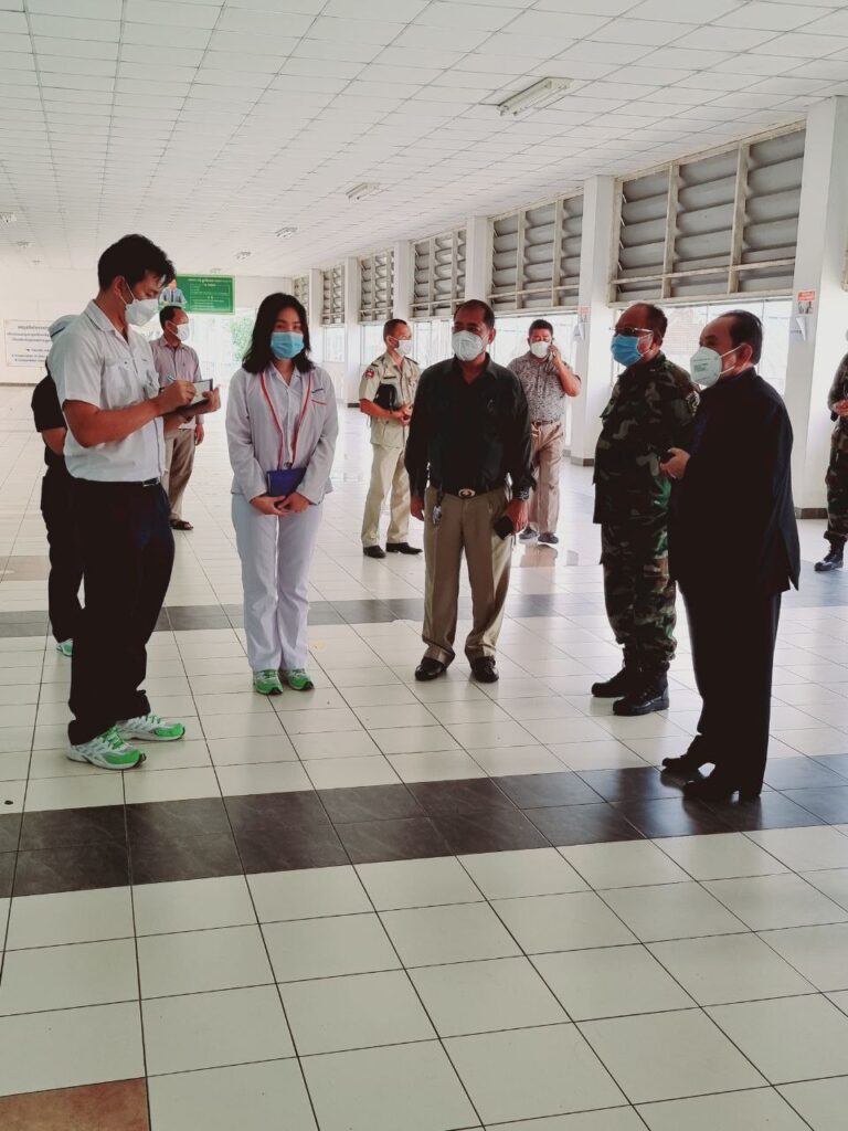 លោក ប្រាក់ វិចិត្រ អភិបាលស្រុក បានអមដំណើរ ឯកឧត្តម នាយឧត្តមសេនីយ ម៉ក់ សារុន ឣគ្គមេបញ្ជាការរងនៃកងយុទ្ឋពលខេមរភូមិន្ទ និងជាឣនុប្រធាន ឣនុគណ:កម្មការចំពោះកិច្ច ការចាក់វាក់សាំងកូវិដ-១៩ របស់ក្រសួងការពាជាតិ ចុះពិនិត្យទីតាំងសម្រាប់ការចាក់វ៉ាក់សាំងការពារជំងឺកូវីដ-១៩ ជូនដល់កម្មករ កម្មការនី បុគ្គលិករោងចក្រ