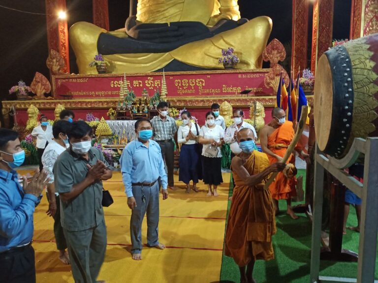 លោក ចា ឡាន់ ប្រធានក្រុមប្រឹក្សាស្រុក និងលោក ប្រាក់ វិចិត្រ អភិបាលស្រុក បានចូលរួមពិធីសូត្រធម៌ វាយគង ទូងស្គរ ព្រមគ្នា ជាសញ្ញាផ្សព្វផ្សាយព័ត៌មានដល់ប្រជាពលរដ្ឋ ពុទ្ធបរិស័ទ ឱ្យបង្កេីនការប្រុងប្រយ័ត្នខ្ពស់ ដោយអនុវត្តនូវវិធានការ ៣ការពារ និង ៣កុំ