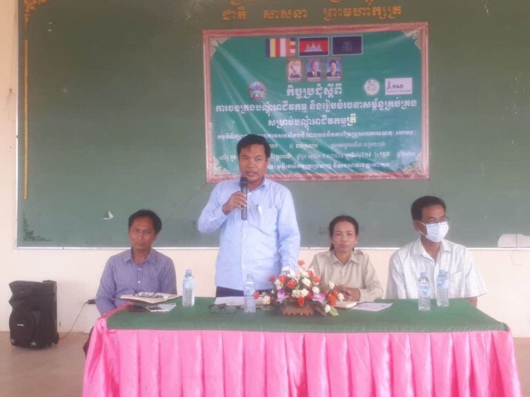 លោក សុខ សំអាត អនុប្រធានមន្ទីរកសិកម្ម រុក្ខាប្រមាញ់ និងនេសាទខេត្តកោះកុង និងលោកស្រី នាង គុន មេឃុំពាមក្រសោប ដឹកនាំកិច្ចប្រជុំស្តីពី ការចងក្រងបណ្តុំអាជីវកម្ម និងរៀបចំរចនាសម្ព័ន្ធគ្រប់គ្រងសម្រាប់បណ្តុំអាជីវកម្មចិញ្ចឹមត្រី