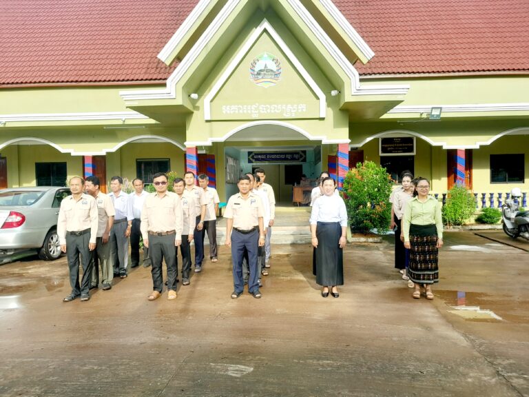 មន្រ្តីរាជការ នៃរដ្ឋបាលស្រុកមណ្ឌលសីមា បានធ្វើការគោរពទង់ជាតិ និងភ្លេងជាតិ នៃព្រះរាជាណាចក្រកម្ពុជា នាព្រឹកថ្ងៃចន្ទនេះដើមសប្តាហ៍