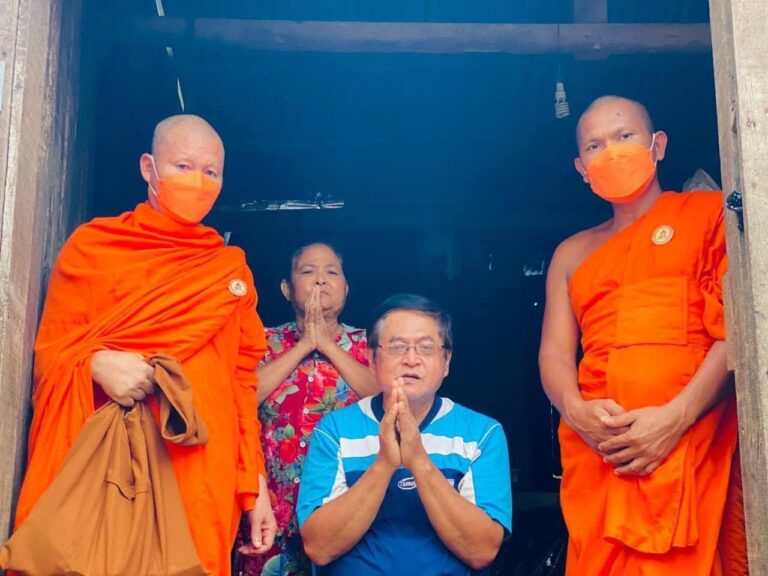 ព្រះធម្មានុរ័ក្ខបាល លី វិចិត្រ ព្រះរាជាគណៈថ្នាក់កិត្តិយស គណៈមហានិកាយនៃព្រះរាជាណាចក្រកម្ពុជា ជាព្រះទីបធម្មាភិបាល ព្រះបាឡាត់គណខេត្តកោះកុង ជាព្រះចៅអធិការវត្តរស្មីសាមគ្គីគិរីទ័ពជាង និងជាព្រះប្រធានសាខាសមាគមសិស្ស និស្សិតបញ្ញវន្ត ក្មេងវត្ត ខេត្តកោះកុង ជូនដល់លោក ថាញ់ ថា អាយុ ៦៦ឆ្នាំ ជាជនពិការជើងម្ខាង ដោយគ្រោះថ្នាក់ចរាចណ៍ ដែលរស់នៅ ភូមិស្រែអំបិល ឃុំស្រែអំបិល ស្រុកស្រែអំបិល
