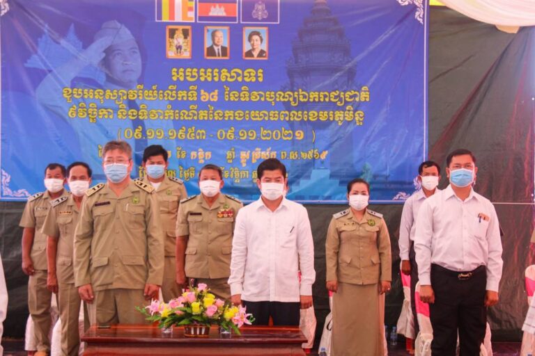 រដ្ឋបាលស្រុកស្រែអំបិល បានរៀបចំប្រារព្ធមីទ្ទីងអបអរសាទរខួបអនុស្សាវរីយ៍លើកទី៦៨ ទិវាបុណ្យឯករាជជាតិ ៩វិច្ឆិកា និងទិវាកំណើតនៃកងយោធពលខេមរភូមិន្ទ (៩.១១.១៩៥៣ – ៩.១១.២០២១ ) ក្រោមអធិបតីភាព លោក ម៉ាស់ សុជា ប្រធានក្រុមប្រឹក្សាស្រុក និងលោក ជា ច័ន្ទកញ្ញា អភិបាល នៃគណៈអភិបាលស្រុក