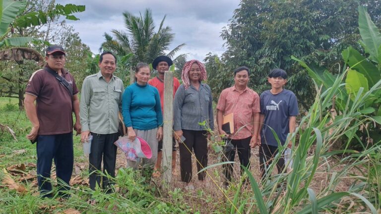 លោក ផេង ផល អភិបាលរង នៃគណៈអភិបាលស្រុកថ្មបាំង ចុះវាស់វែងទីតាំងដីជាក់ស្តែងបញ្ចប់វិវាទឈ្មោះ អូន ឈុន និងឈ្មោះ ជ សេដ្ឋា លោកស្រី សៀង សុភី