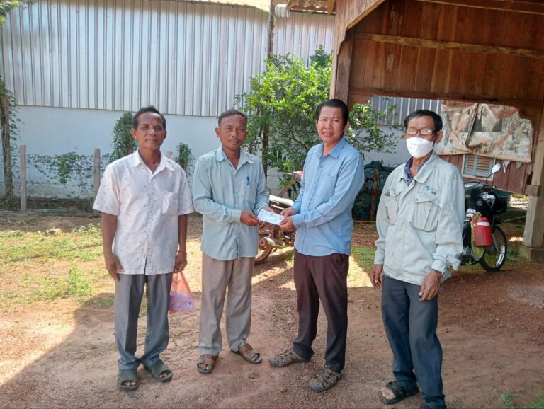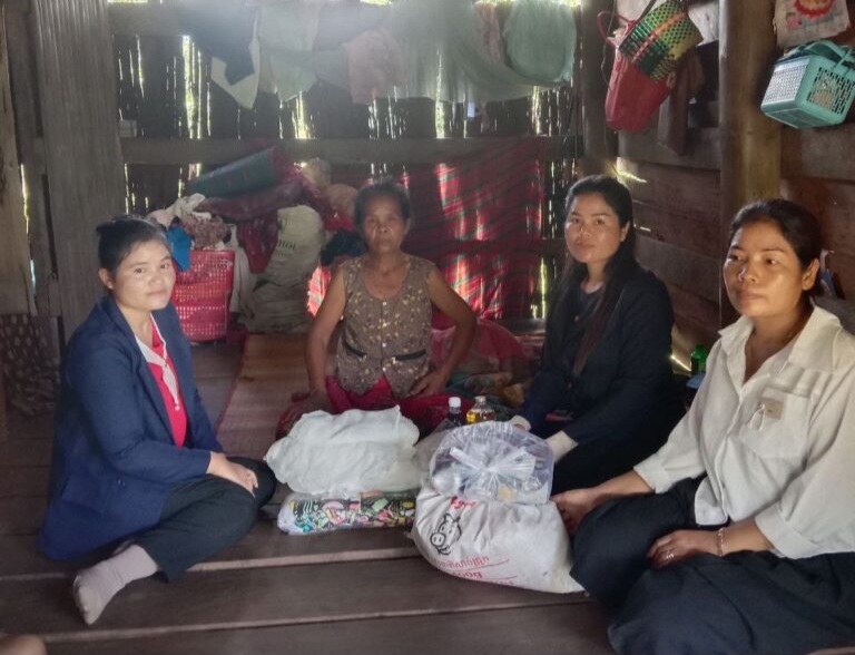 លោកស្រី ឆេង ឡួត ជំទប់ទី២ឃុំ តំណាងឱ្យលោក សៀង ថន មេឃុំ ននិងលោកស្រី មៀច ប៉ីញ ក្រុមប្រឹក្សាឃុំ និងជាអ្នកទទួលបន្ទុកកិច្ចការនារី និងកុមារឃុំ ព្រមទាំងលោកស្រី តយ គឿន ជាអ្នកលក់ដូរ នៅភូមិព្រែកស្វាយ បានចុះសួរសុខទុក្ខ អ្នកមីង វ៉េង ខ្នា រស់ នៅភូមិកោះ ឃុំថ្មដូនពៅ