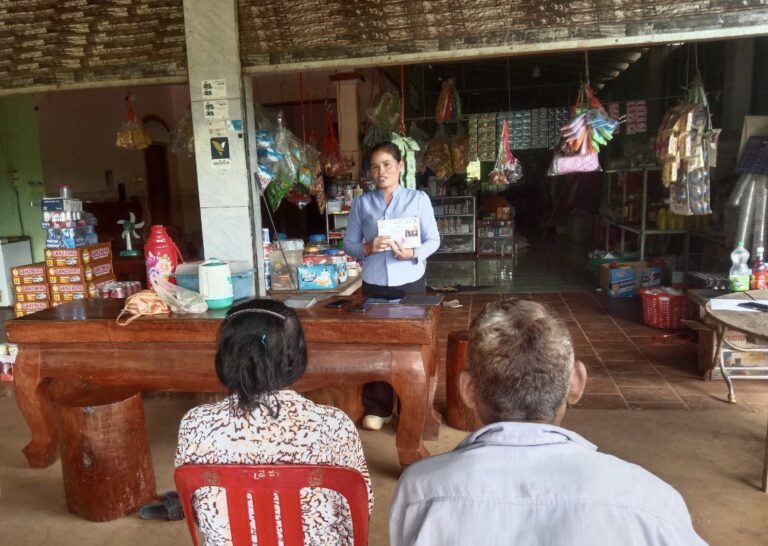 លោកស្រី មៀច ប៉ីញ ក្រុមប្រឹក្សាឃុំ ជាអ្នកទទួលបន្ទុកកិច្ចការស្រ្តី នឹងកុមារឃុំ បានដឹកនាំក្រុមទ្រទ្រង់សុខភាពភូមិកោះ ចុះផ្សព្វផ្សាយ អំពីអត្ថប្រយោជន៍ នៃប័ណ្ណសមធម៌