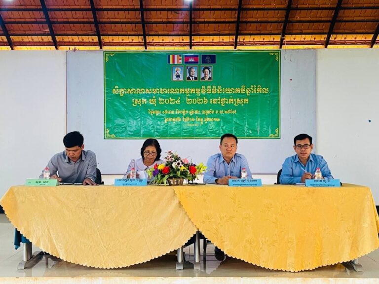 រដ្ឋបាលឃុំឫស្សីជ្រុំ ចូលរួមសិក្ខាសាលាសមាហរណកម្មកម្មវិធីវិនិយោគបីឆ្នាំរំកិលស្រុកឃុំឆ្នាំ ២០២៤-២០២៦ នៅថ្នាក់ស្រុក