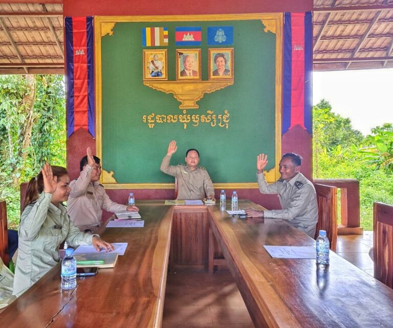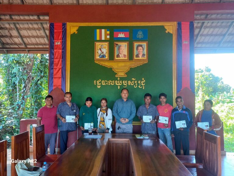 រដ្ឋបាលឃុំឫស្សីជ្រុំ លោក ផង់ សុផាន់ណា មេឃុំឫស្សីជ្រុំ លោក យ៉ាក ខឿន ជំទប់ទី១ឃុំ និងលោកស្រី យើ យ៉ារ៉ា សមាជិកក្រុមប្រឹក្សាឃ បានរៀបចំកិច្ចប្រជុំប្រគល់ប័ណ្ណសមធម៍ជូនដល់គ្រួសារងាយរងហានិភ័យចំនួន ៦គ្រួសារ