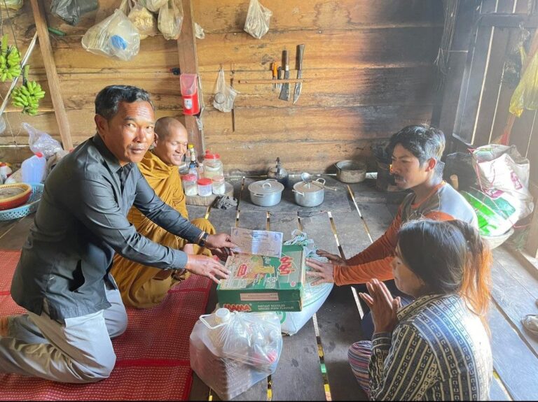 រដ្ឋបាលឃុំឫស្សីជ្រុំ លោក វ៉ាន់ ជន មេភូមិគគីរជ្រុំ និងព្រះគ្រូចៅអធិការវត្តព្រះពុទ្ធថ្មបាំង(ហៅវត្តក្រោម)បានចុះសួរសុខទុក្ខគ្រួសារ លោក ប៉ុល វ៉ាវី ដែលមានជីវភាពខ្វះខាតទីទាល់ក្រនៅភូមិត្រពាំងឈើត្រាវ ឃុំឫស្សីជ្រុំ ស្រុកថ្មបាំង