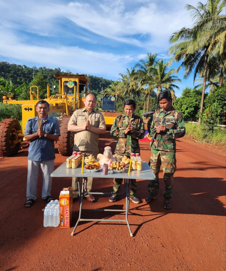 លោក ផង់ សុផាន់ណា មេឃុំឫស្សីជ្រុំ និងកម្លាំងវិស្វកម្មលេខ១៧៨ ស្ពាន-ថ្នល់ បានប្រារព្ធពិធីសែនព្រែនបួងសួងដល់ម្ចាស់ទឹកម្ចាស់ដី ដើម្បីសុំបើកការដ្ឋានសាងសង់ផ្លូវកៅស៊ូ ដែលមានចំនួន ១០ គីឡូម៉ែត្រ