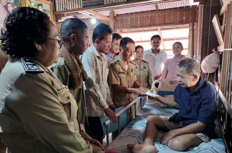 លោក ពេជ្រ ឆលួយ ប្រធានក្រុមប្រឹក្សាស្រុកថ្មបាំងដឹកនាំ លោក លោកស្រី សមាជិកក្រុមប្រឹក្សាស្រុក លោក លោកស្រី អភិបាលរងស្រុកអញ្ជេីញ ចុះសួរសុខទុក្ខលោក សៀវ សាបាន អតីតអភិបាលរងស្រុក ដែលមានជំងឺ សម្រាកព្យាបាលនៅគេហដ្ឋាន