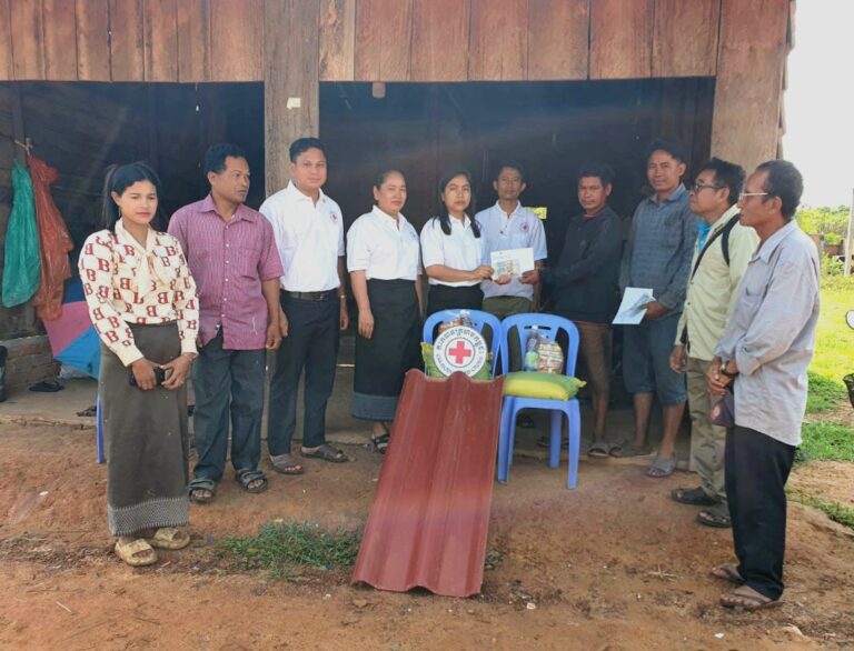 លោកស្រី ទួត ហាទីម៉ា ប្រធានអនុសាខាកាកបាទក្រហមកម្ពុជា និងជាអភិបាលស្រុកថ្មបាំងដឹកចុះផ្ដល់អំណោយជូនប្រជាពលរដ្ឋដែលបណ្តាលពីខ្យល់កន្រ្តាក់ចំនួន២ គ្រួសារ
