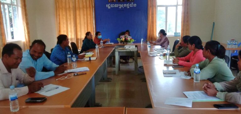លោកស្រី អុល បញ្ញា ប្រធានគណ:កម្មាធិការពិគ្រោះយោបល់ស្រ្ដី និងកុមារស្រុកថ្មបាំងបានដឹកនាំកិច្ចប្រជុំប្រចាំខែតុលា នៅសាលប្រជុំសាលាស្រុកថ្មបាំង