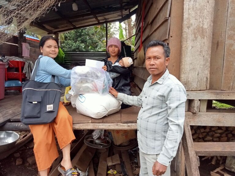 លោកស្រី យើរយ៉ារ៉ា សមាជិកក្រុមប្រឹក្សាឃុំឬស្សីជ្រុំ និងទទួលបន្ទុកកិច្ចការនារីឃុំ នាំយកថវិកានិងអំណោយទៅជូនគ្រួសារ រិន សឿន