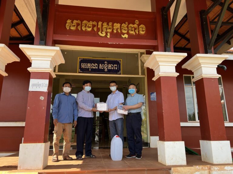 រដ្ឋបាលស្រុកថ្មបាំងបានទទួលការឧបត្ថម្ភអាល់កុល និងថ្នាំព្យាបាលជំងឺកូវីដ១៩ពីក្រុមហ៊ុនសាងសង់វ៉ារីអគ្គិសនីចិន