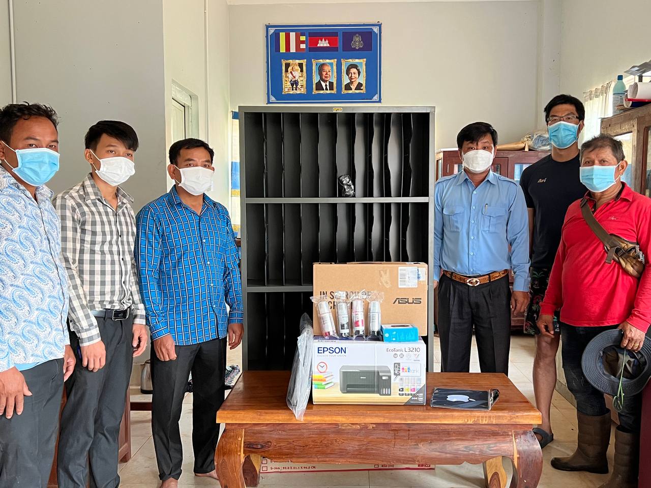 លោក អន សុធារិទ្ធ អភិបាលនៃគណៈអភិបាលស្រុកថ្មបាំង និងតំណាងក្រុមហ៊ុន លឹម លុង បានយកកុំព្យូទ័រយួរដៃ ១គ្រឿង មា៉ស៊ីនព្រីន ១គ្រឿង និងទូរដាក់ឯកសារដែលឧបត្ថម្ភដោយក្រុមហ៊ុន ប្រគល់ជូនសាលា បឋមសិក្សាឬស្សីជ្រុំ