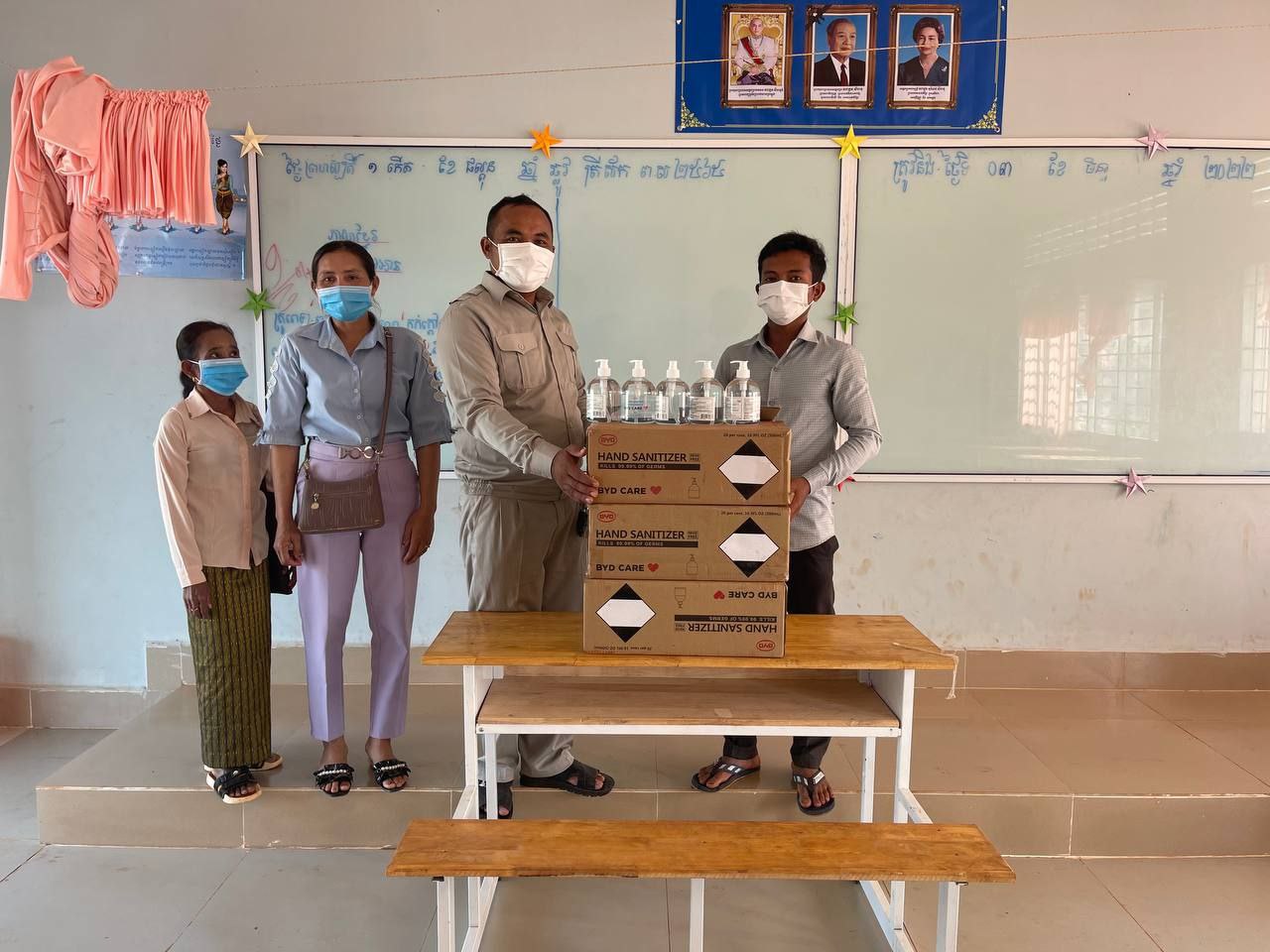 លោក ចាន់ សុខ មេឃុំប្រឡាយ បានដឹកនាំក្រុមការងារចុះចែក ជែលលាងដៃដល់សាលារៀនចំនួនបី