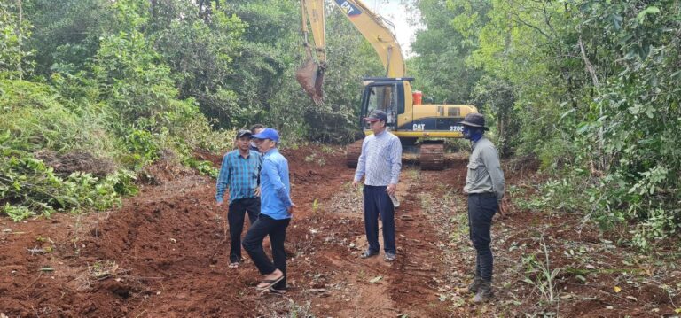 លោក អន សុធារិទ្ធ អភិបាល នៃគណៈអភិបាលស្រុក ក្រុមប្រឹក្សាស្រុកដឹកនាំក្រុមការងារ រួមជាមួយ តំណាងអង្គការសម្ព័ន្ធមិត្តសត្វព្រៃ ចុះពិនិត្យទីតាំងធ្វើផ្លូវក្រាលគ្រួសក្រហមមួយខ្សែតភ្ជាប់ពី ឃុំថ្មដូនពៅ ទៅឃុំជីផាត