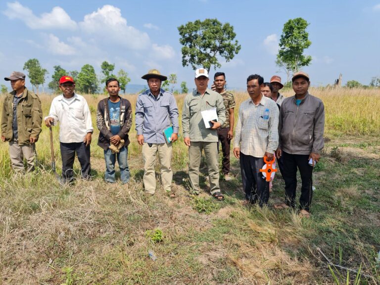 លោកអភិបាលស្រុកថ្មបាំងបានចុះពិនិត្យ និងដឹកនាំក្រុមការងារបែងចែកដីសម្បទាសង្គមកិច្ចជូនប្រជាពលរដ្ឋនៅចំណុចវាលត្រៀក ភូមិគគីរជ្រុំ ឃុំឬស្សីជ្រុំ