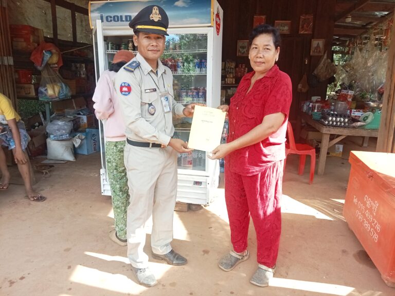 កម្លាំងប៉ុស្តិ៍នគរបាលរដ្ឋបាល ឃុំតាទៃលើ បានចុះល្បាតនឹងចែកសៀវភៅស្នាក់នៅ(ក២) ចំនួន០១ក្បាល។ សៀវភៅគ្រួសារ(ក៤)ចំនួន០២ក្បាល