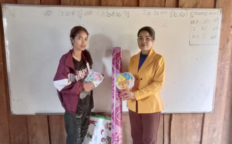 លោកស្រី ឆេង ឡួត ជំទប់ទី២ និងលោកស្រី មៀច ប៉ីញ ជាអ្នកទទួលបន្ទុកកិច្ចការនារី នឹងកុមារឃុំ បានចុះពិនិត្យ និងបាននាំយកសម្ភារ មួយចំនួនប្រគល់ជូនអ្នកគ្រូ ដើម្បីតុបតែងលំអរនៅក្នុងថ្នាក់រៀន សាលាមតេយ្យសហគមន៍ភូមិកោះ