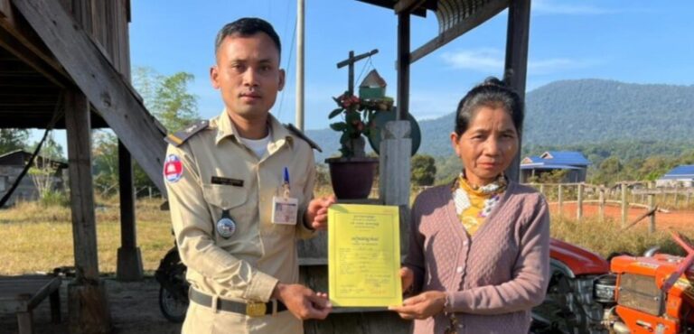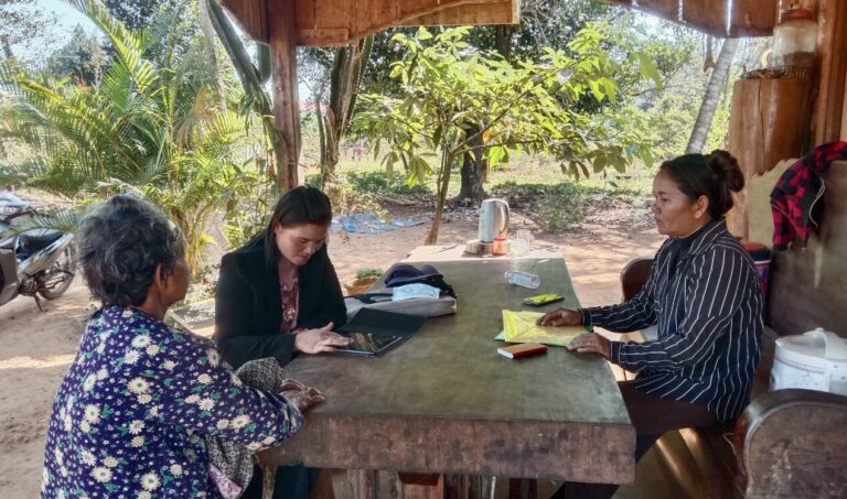 លោកស្រី មៀច ប៉ីញ ក្រុមប្រឹក្សាឃុំ ជាអ្នកទទួលបន្ទុកកិច្ចការនារី និងកុមារឃុំ បានចុះសម្ភាសន៍ គ្រួសារដែលបានដាក់ពាក្យស្នើរសូមប័ណ្ណក្រីក្រ